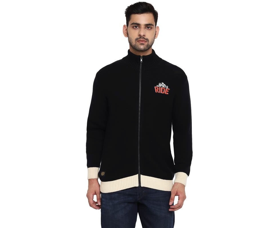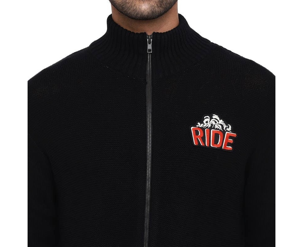 ROYAL ENFIELD High Neck Fz Sweater - Black