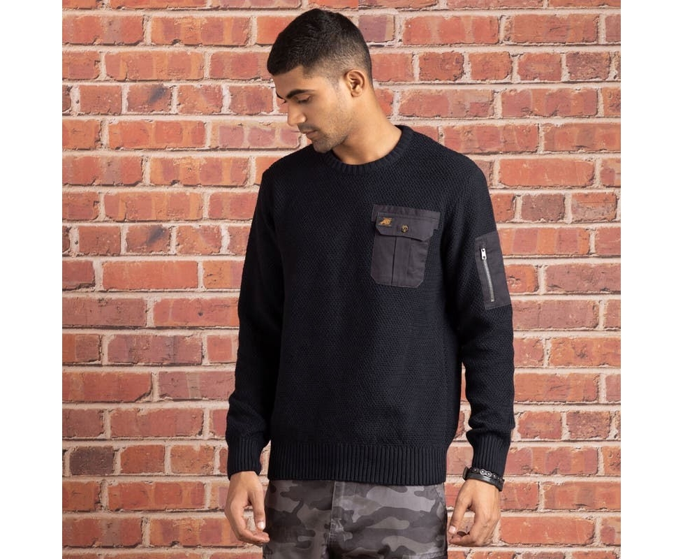 This Military Sweater has an exquisite design with a box pleat patch pocket on the chest, taking inspiration from the colours of the army. Adorn the canon label and make a bold statement during your rides. This cosy 100% cotton winter wear is comfortable easy to maintain.