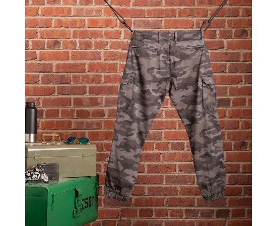 This Royal Enfield Camo Cargo Jogger features six multi-utility pockets to store your essentials. The camouflage design in cotton twill fabric gives you a trendy look and the stretchability you need for a comfortable riding experience.