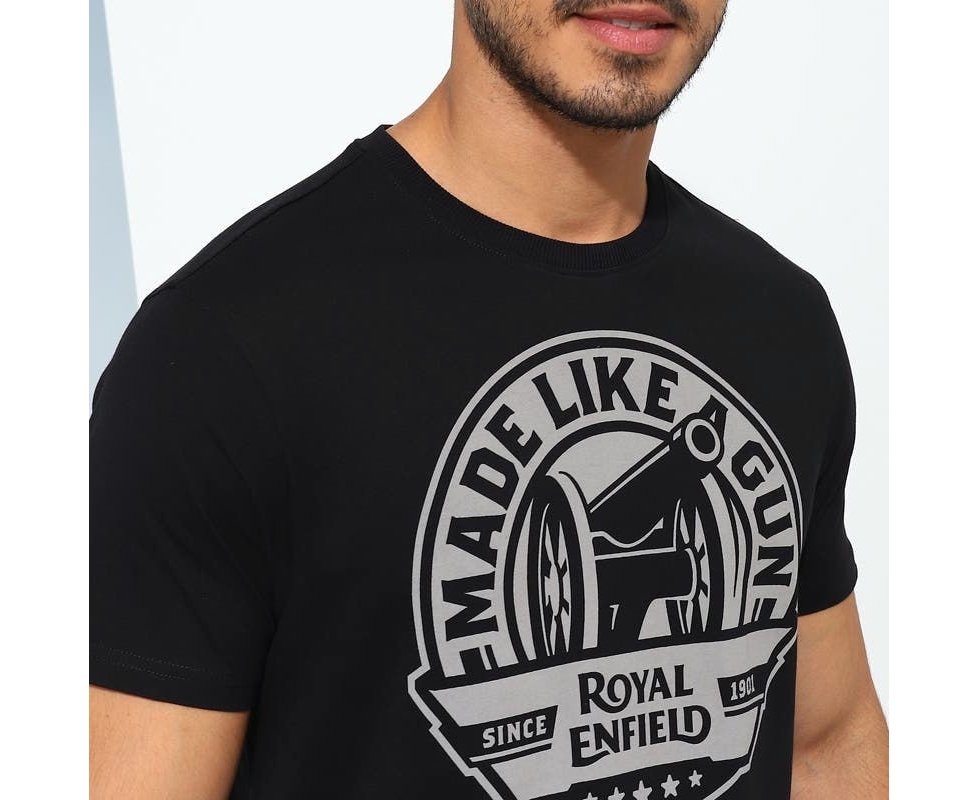 This 'Made Like a Gun' t-shirt is the best companion for your rides. Made from 100% high-quality cotton jersey fabric, it ensures all-day comfort and breathability. Sport a stylish look that shows your love for the motorcycling way of life and the legacy of Royal Enfield.