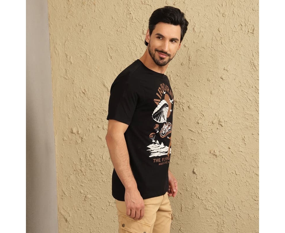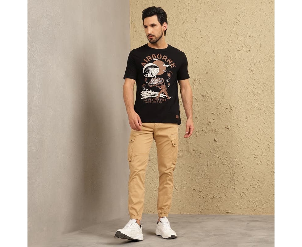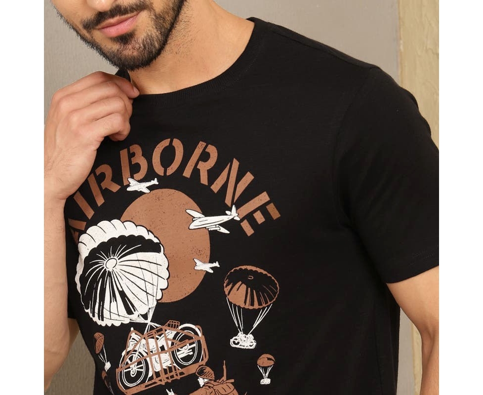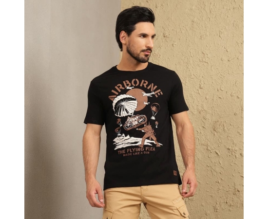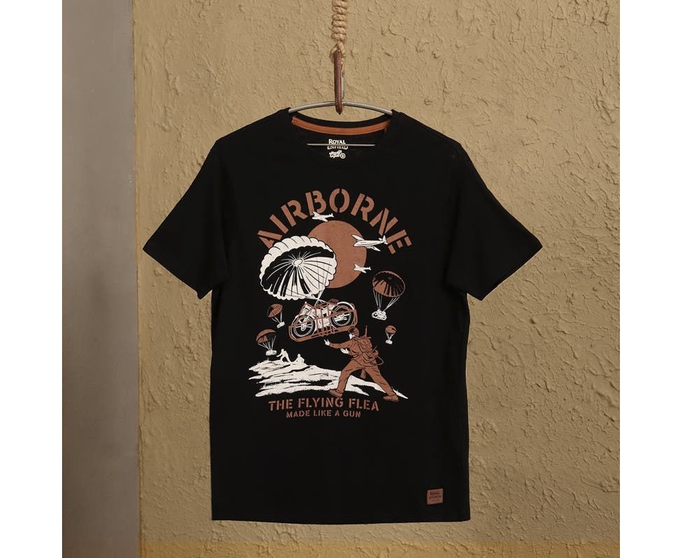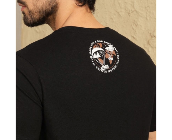 This graphic print T-shirt, featuring the iconic Flying Flea motorcycle, shows Royal Enfield’s enduring relationship with the armed forces. It is a bold and stylish addition to your wardrobe that displays your love for biking culture. It offers a comfortable fit for all your adventures on the roads and trails.