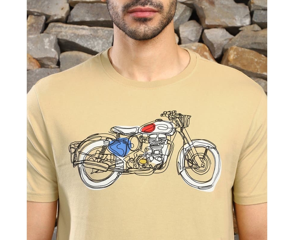Your daily style that carries a line art graphic of an Enfield, made to match your love of riding. Wear this cotton tee for your next summer adventure.