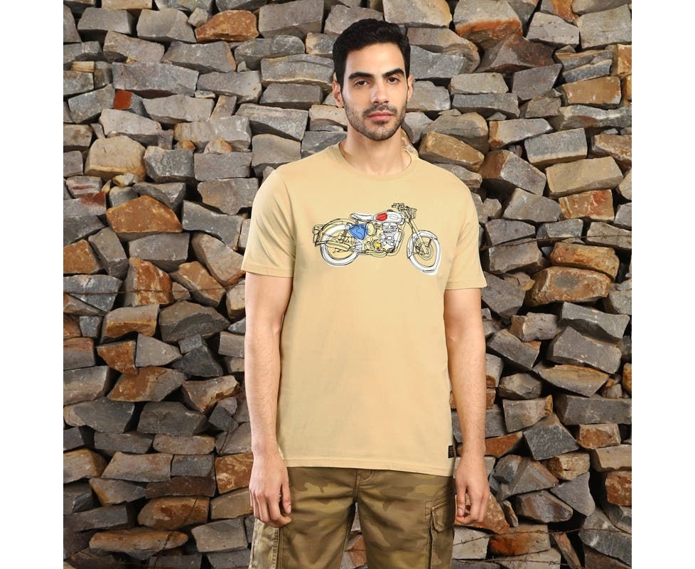 Your daily style that carries a line art graphic of an Enfield, made to match your love of riding. Wear this cotton tee for your next summer adventure.