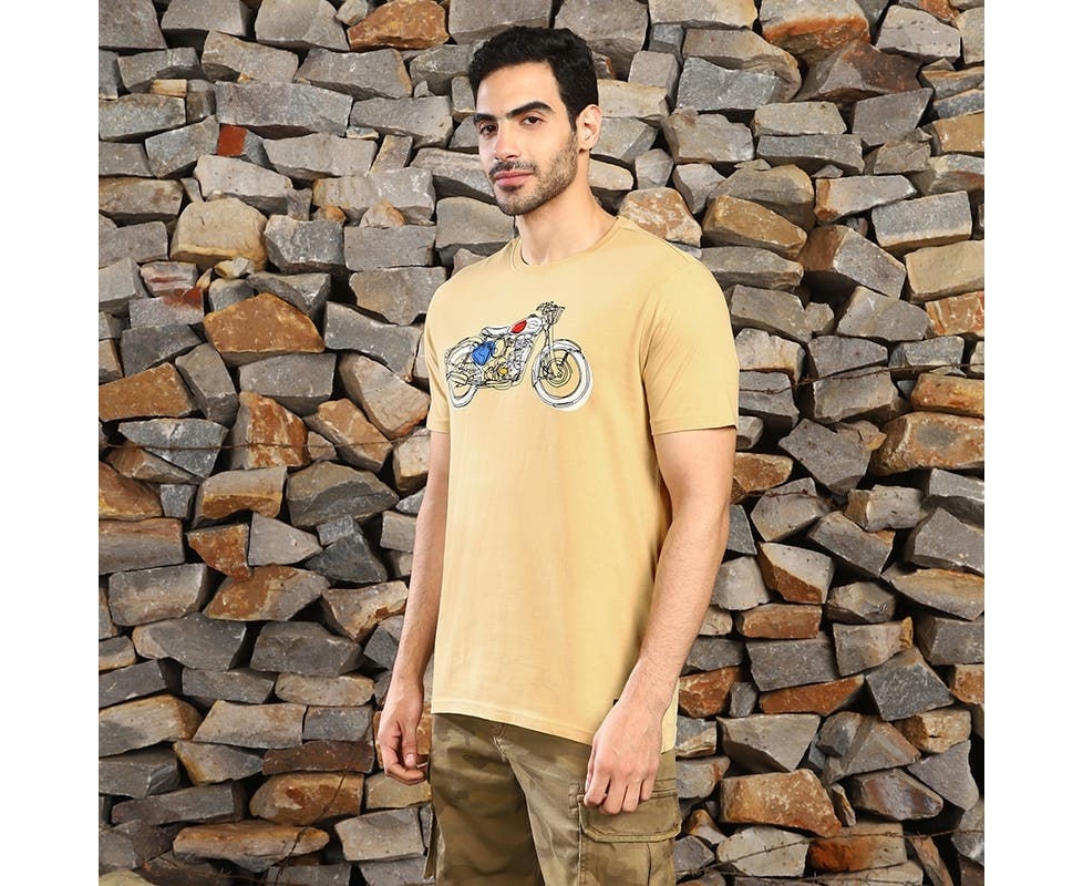 Your daily style that carries a line art graphic of an Enfield, made to match your love of riding. Wear this cotton tee for your next summer adventure.