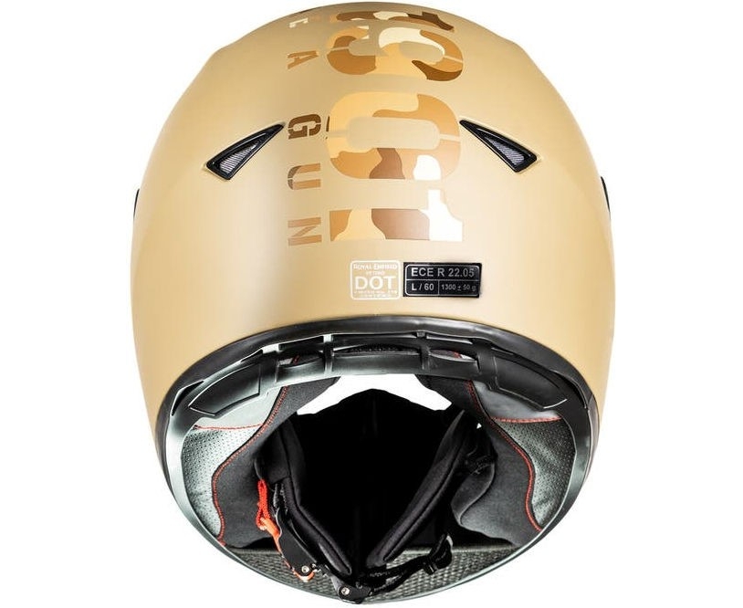MLG Camo full face helmet draws its inspiration from our rich heritage of making raw and resilient Royal Enfield motorcycles. Carrying forward the charm of a classic full face hexlmet, it is equipped with latest safety features and comfort. Whether it is a quick spin around the city or into a new trail, the MLG Camo helmet can brave it all.