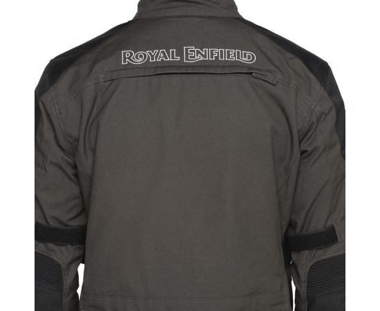 Safety, comfort & time-honoured aesthetics come together in the Royal Enfield SANDERS CE certified riding jacket made from high-density cotton fabric further armed with Cordura patches at impact zones, a water-resistant coating to keep short drizzles at bay and a separate waterproof jacket for those heavy showers. The entire jacket as a unit is CE certified. Crafted with pre-curved sleeves and accordion stretch panels that ensure ease of movement and comfort, equipped with protective D3O EVO X CE Level 1 armour, vents, a waterproof back pouch, and two front pockets for all the essentials, this classic jacket is the perfect wingman with a timeless charm for any adventure.