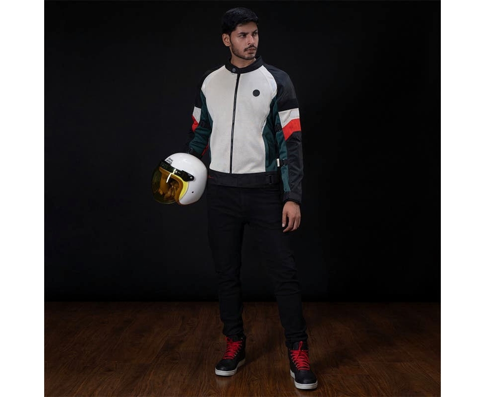 The Streetwind Eco is India's first sustainable riding jacket. Crafted from recycled plastic bottles, this stylish jacket combines comfort and sustainability without compromising performance. Built with responsibility and built for protection this riding jacket is meant for riding in the city. It is light in weight, high in ventilation, and equipped with CE level 2 protection provided by Royal Enfield's Ergo pro-tech armours. It has multiple pockets, adjustable cuffs, and reflective accents, making it ideal for everyday use.