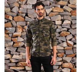Article Number: RLASHS230829 Keep it classy in this all-over-camouflage print shirt that is Inspired by Royal Enfield’s military heritage. It has minimal embroidery of the Indian flag colours on the sleeve placket along with a double chest patch pocket with metal Royal Enfield. Extra buttons on...