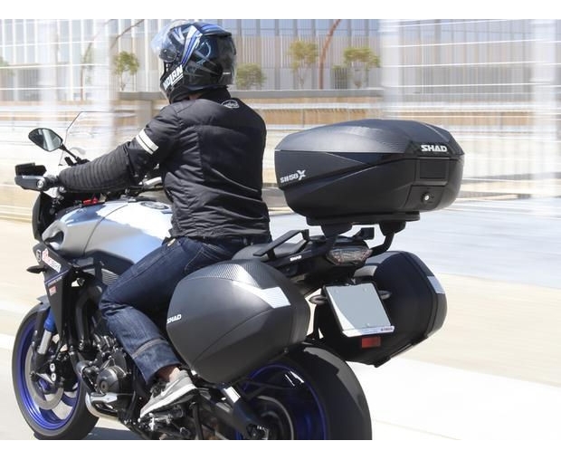 Expandable by SHAD, with volume adjustable in 3 positions and capacity to hold 2 full face helmets. This adjustable top case is aerodynamic and low profiled when fully collapsed but expands in two steps from 46L to 52L and then ultimately 58L for maximum storage.