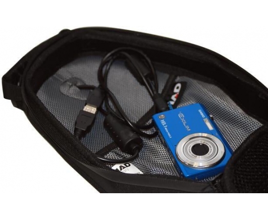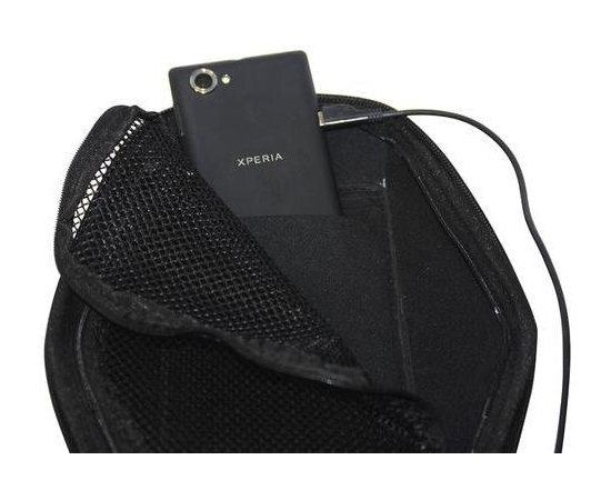 Top compartment for mobile phones up to 5,5”, with crystal film with touch screen.