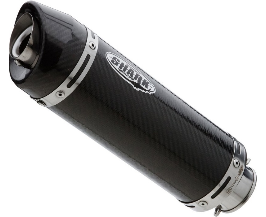 Racefeeling auf der Straße: Der runde Carbonendtopf SHARK Street GP bringt durch seine kompakt kurze Form und die aggressiv angeschrägte Endkappe Dynamik in Look und Performance. Kernig kräftiger SHARK-Sound inklusive. Befestigt wird der Endtopf mit einer hochwertigen Carbonschelle. Mit EG-BE.