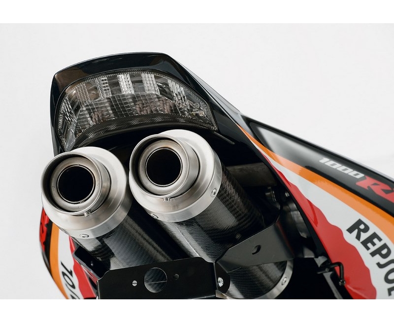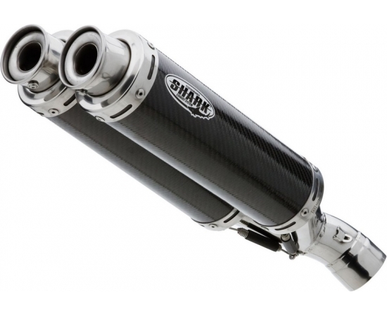Das Superbike-Doppelrohr: Der rassige SHARK Track 1000 mit feinsten Carbonendtöpfen kommt mit sportlich weitem Auslass, energiegeladener Performance und kernig kräftigem Sound. Befestigt werden die runden Ersatzdämpfer mit hochwertigen Carbonschellen. Mit EG-BE.