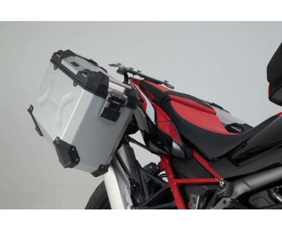 TRAX ADV Alukoffer-System mit Topcase (schwarz), PRO Seitenträger, ADVENTURE-RACK Gepäckträger, Zubehör. Für Modelle ohne originale Honda Gepäckbrücke.