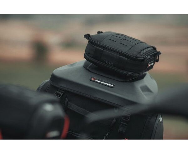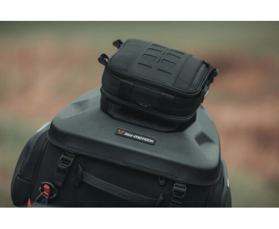 The MOLLE loops on the underside of the PRO Plus make this bag a versatile companion. It can be attached to the MOLLE attachment on all bags from the PRO series, both onto PRO tail and tank bags. This makes it the perfect addition for those who need additional storage space for small, easily accessible travel items.