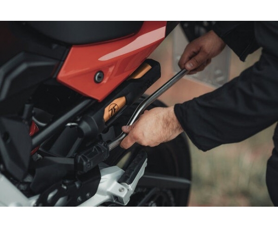 Developed specifically for sporty motorcycles, the saddlebags have a minimal effect on driving characteristics. When travelling without luggage, the removable support arms can be detached with a simple step, leaving only inconspicuous holders behind on the bike.