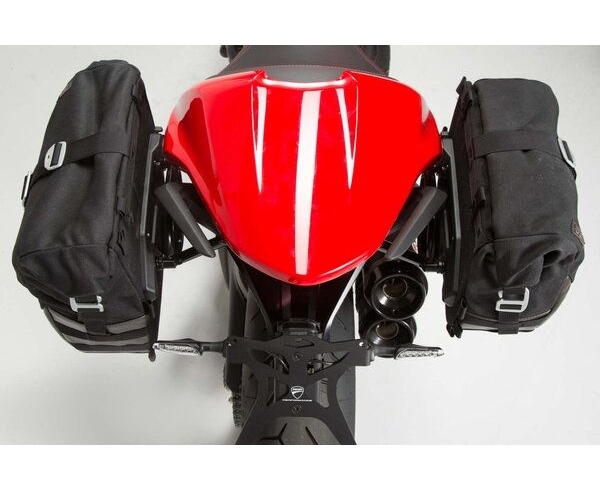Das Seitentaschen-System enthält die passenden SLC-Seitenträger für die Ducati Monster 1200/S sowie ein LC1 und eine LC2 Legend Gear Seitentasche.