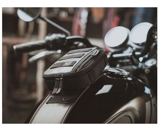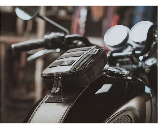 An alternative is the compact Legend Gear LT1 magnetic tank bag, which can be attached to almost all steel fuel tanks by using magnets.