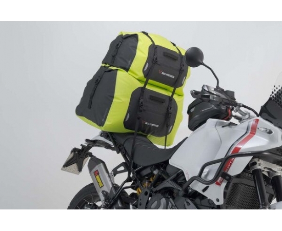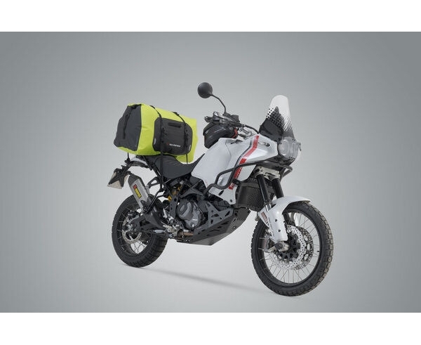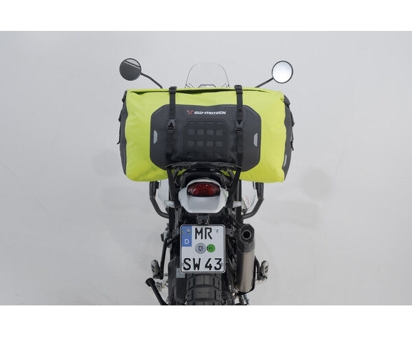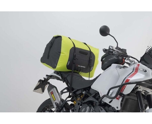 As a practical combination of tail and carrying bag, the Drybag 600 offers both the comfort of a bag and plenty of weatherproof and dustproof storage for your motorcycle. The bag can be easily expanded with smaller tail bags, and pairing it with the Drybag 260 is particularly popular with bikers. The Drybag 600 has a practical zip compartment and is available in gray and yellow.