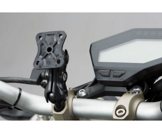 The 1" ball of the GPS mount is attached to the motorcycle by a bolt that simply replaces the original one. The pivoted socket arm enables optimal positioning of the GPS device. The GPS holder with its universal drill-hole pattern allows the secure attachment of many current models of GPS devices such as Navi Case Pro device cases and smartphone hardcases from SW-MOTECH.