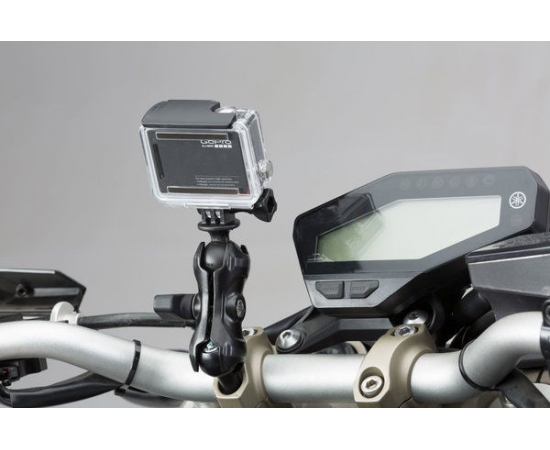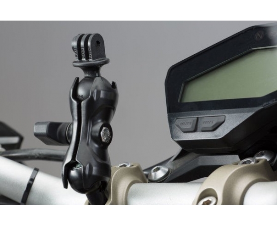 And action! GoPro HD HERO camera models combine robustness, versatility and amazing picture quality for its case size. This makes this compact digital camera ideal for use on motorcycles. SW-MOTECH offers a versatile universal mount that comes as a complete set of different mounting options for the newest generation of action camera. The ball holder can also be used with the Actionpro x7. Mounting options include a mirror thread holder and M6 or M8 ball sockets, as well as clamps for pipe diameters of 22 and 28 mm as well as 1 inch. The pivotable RAM arm facilitates precise positioning of the camera to align the image exactly to the needs of the driver.