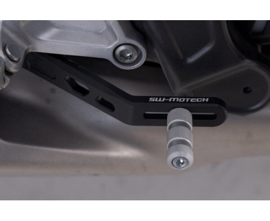 Der verstellbare Fußbremshebel aus hochwertig gefrästem Aluminium mit HART-COAT® Beschichtung ermöglicht eine bessere Bedienbarkeit und Dosierung der Bremse. Der SW-MOTECH Fußbremshebel ist auf einer Länge von 5 cm einstellbar, dadurch passt er zu jedem Fuß und zu jedem Fahrstil. Die Rändelungen des Auftritts erhöhen die Griffigkeit und sorgen für verbesserte Stabilität beim sportlichen Fahren und längeren Touren. Mit dem separat erhältlichen Adventure-Auftritt verbesserst du das Handling der Fußbremse insbesondere beim Offroad-Fahren im Stehen.