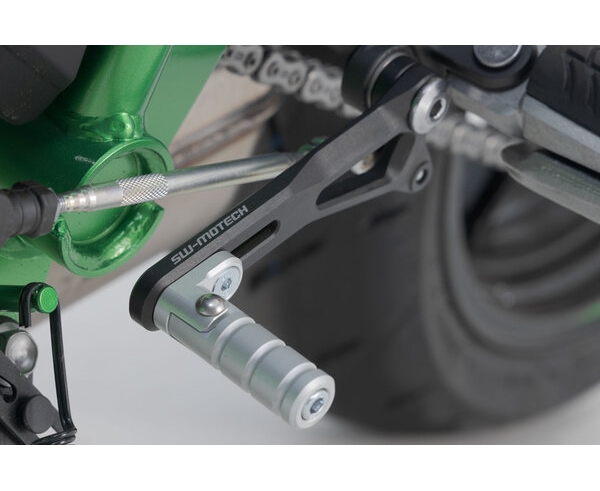 SchalthebelDer aus hochwertiger Aluminium-Legierung gefräste Schalthebel für die Kawasaki aus der Z Serie lässt sich stufenlos einstellen, um die optimale Schaltposition zu finden.Schalthebel von SW-MOTECH verbinden ausgesuchte Materialien und innovatives Design mit perfekter Passform. Eine HART-COAT® Behandlung beugt Kratzern am Hebel vor, die eingebaute Klappfeder schützt den Schalthebel bei Stürzen.Zweiteiliger Schalthebel mit stufenlos verstellbarer EinheitAbstand zwischen Auftritt und Schaltwelle beim originalen Schalthebel: 96 mmEinstellbereich des Abstands zwischen Auftritt und Schaltwelle beim SW-MOTECH Schalthebel: 68 - 122 mmDer Auftritt lässt sich ebenfalls um 180 Grad gedreht montierenBessere Ergonomie und sichere Bedienung des SchalthebelsFedermechanismus ermöglicht Einklappen und schützt vor Bruch bei StürzenRobust und formschön: CNC-gefrästes, HART-COAT® beschichtetes AluminiumMontage einer Schalthebel-Verlängerung zur Vergrößerung der Auftrittsfläche möglichKeine ABE für den deutschen Straßenverkehr erforderlichLieferumfang1 x SchalthebelAnbauanleitungMontagematerialDetailsMaterial: Aluminium / AluminiumOberfläche: eloxiert / eloxiertFarbe: schwarz / silbernGesamtgewicht: ca. 0,2 kgAchtungDas Wegklappen des Schalthebels beim Umfallen des Motorrades ist nur gewährleistet, wenn der Schalthebel in der Standardposition nach vorne montiert ist.Anbauanleitung