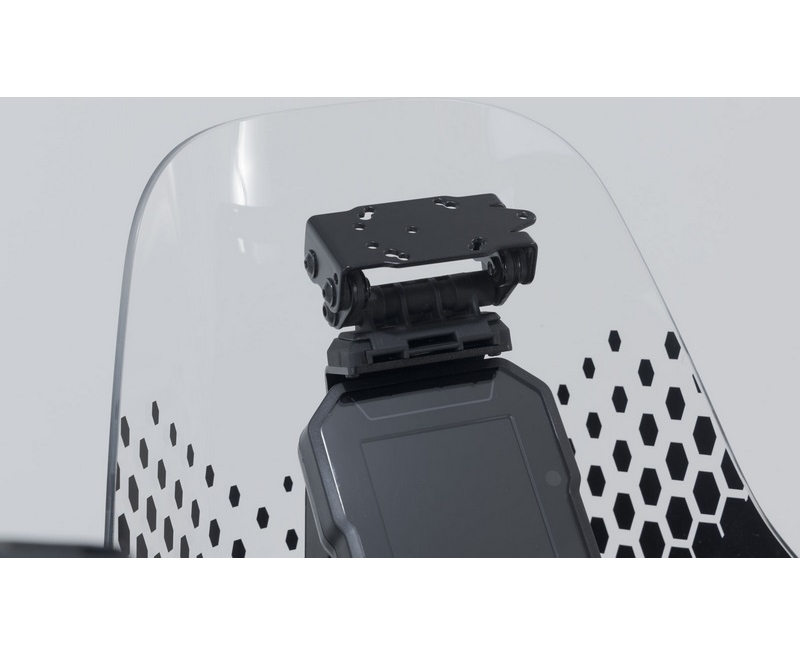 Retaining plate with universal drill-hole pattern provides secure hold for the usual GPS models and Navi Case Pro device cases or hardcases from SW-MOTECH.