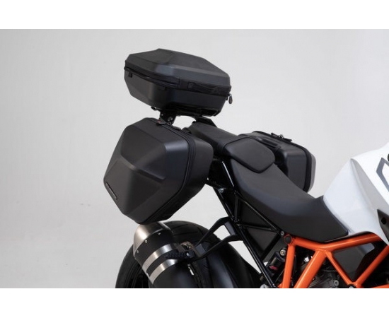 Das schlanke STREET-RACK wurde gezielt für sportliche Motorräder, Naked Bikes und kleinere Straßenmaschinen entwickelt. Ganz ohne Werkzeug mit nur einem Handgriff lässt sich das URBAN ABS Topcase oder eine Adapterplatte auf dem Gepäckträger arretieren. Die Adapterplatte bietet eine stabile Basis für Topcases von SW-MOTECH, Givi, Krauser und Shad oder eine SysBag 15/30 Tasche mit Adapterplatte.