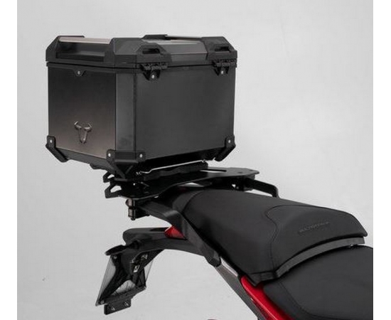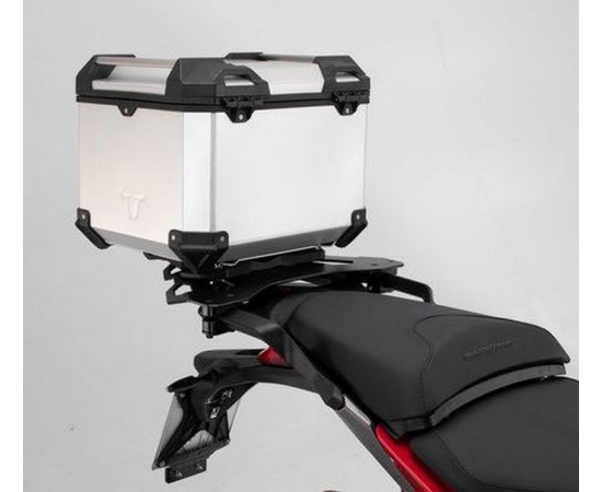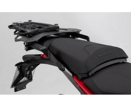 The compact STREET-RACK was developed specially for sporty motorcycles, naked bikes and smaller street bikes. The URBAN ABS top case or an adapter plate can be fixed to the rack in one step without any tools. The adapter plate provides a sturdy base for top cases from SW-MOTECH, Givi, Krauser and Shad or a Sysbag 15/30 with adapter plate. Together with the extension (sold separately) with extra large contact surface, the STREET-RACK is also suitable for strapped-on luggage. With our STREET-RACK, your bike is ready for the next long tour in a few simple steps.