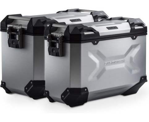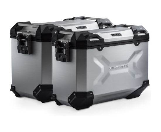 Durable TRAX ADV aluminum cases feel at home on any stretch of road: embossed patterns add stability to the 1.5 millimeter-thick, welded aluminum wall material. A completely removable lid with carrying handles made of anodized aluminum and quick release fastener makes loading and unloading of motorcycle luggage easier; the beveled side edge provides high ground clearance when cornering. With this complete solution, you have all the components you need to travel with TRAX: two waterproof TRAX ADV side cases, two detachable SW-MOTECH side carriers, adapter kit, lock set, lid limiter and anti-theft protection at an attractive price.