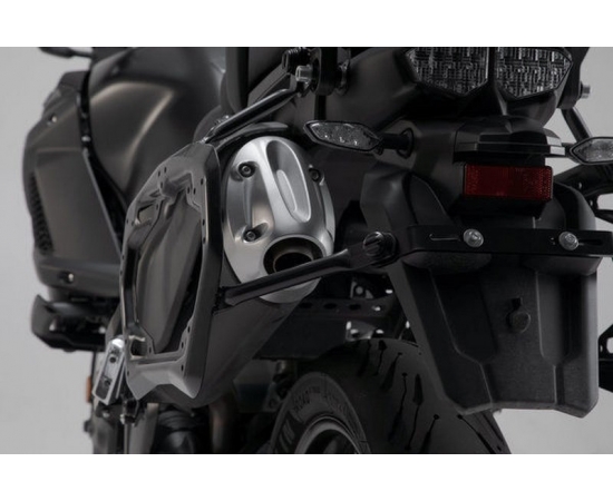 Even more robust and ready for adventure - but still removable: with the introduction of the first removable carrier for motorcycle cases, we've made our mark on the accessories market, the PRO side carrier is the new generation. Offroad fans will be impressed. The bike-specific PRO side carrier made of 2.5 mm-thick steel is extremely durable. The PRO side carrier offers side cases from SW-MOTECH, Givi/Kappa, Hepco & Becker, Krauser and Shad as well as the Sysbag 15 and Sysbag 30 a secure fit - the matching adapter kits are sold separately. The PRO side carrier's numerous functional drill holes enable the mounting of RotopaX canisters and other accessories. Adapter kits for attaching cases from Givi/Kappa, Krauser, Hepco & Becker and Shad are also available.