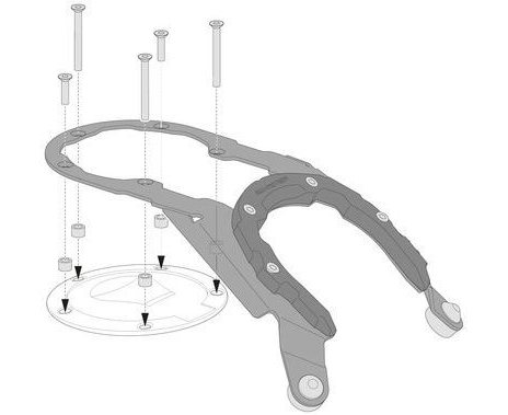 In this PRO tank ring model, the tank ring sits on a bike-specific mounting piece. The mounting piece is firmly screwed onto the tank of the motorcycle.