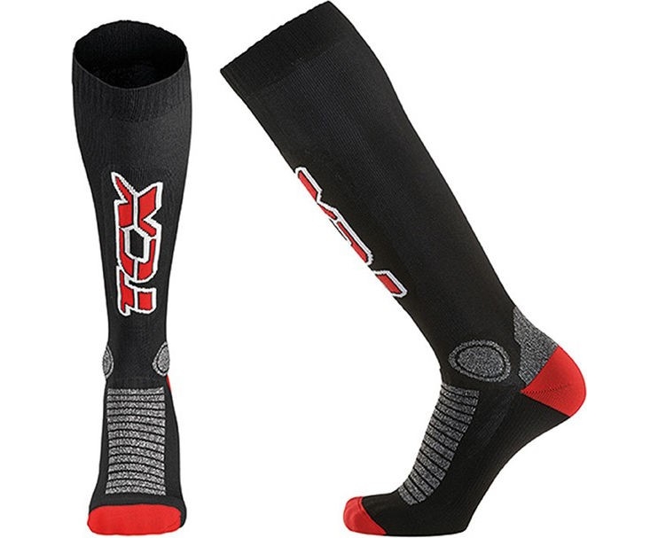 TCX® technical socks intended for ON-OFF use were devised to optimise comfort and sensibility in riders equipped with technical touring or off-road boots. Polypropylene yarn has superior breathability characteristics and it is capable of quickly removing sweat from the sole of your foot. The socks feature a high leg and a generous elasticated area around the calf, which guarantees stability of fit and avoids excessive muscle compression. In addition, to avoid unpleasant rubbing, the socks boast large padded areas in the shinbone, ankle and calf areas. The particular differentiated compression warp makes the use of these socks comfortable even after several hours of use, and it offers a light toning effect on the calf muscles.