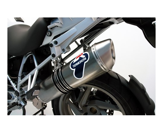 SILENCER Termignoni introduces the homologated slip on for the BMW R 1200 GS (Model Year 2010 – 2012), code BW02.The exhaust is characterized by the main structure in stainless steel and sleeve in Poppy, a special machining that gives the “carbon look” at the metal.It offers a reduce of weight (- 2500 kg).The performance enhancement and weight savings inherent in our racing character, offer an even more powerful driving experience, coupled with our unmistakable #italiansound, make your bike unique.Inox - Inox Carbon look
