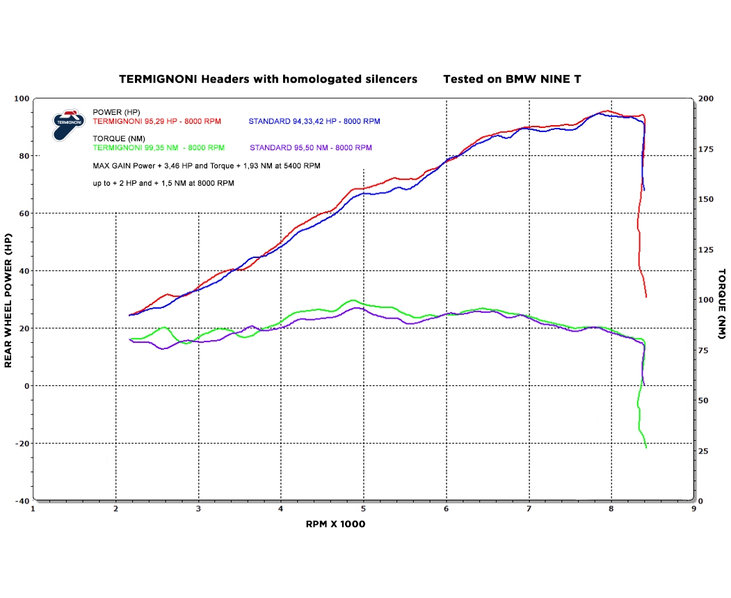 COLLECTOR Termignoni developed racing collectors, suitable to BMW NINET (2016 – 2018).The collectors are characterized by a structure in stainless steel.The manifolds are suitable to both Termignoni slipon BW1408040IIA and stock exhaust.In terms of weight it offers a reduce of – 2,000 kg. In terms of performance it offers with Termignoni BW14 an increase of power( + 3,46 Hp at 5.400 rpm) and torque (+ 1,93 Nm at 5.400 rpm). Stainless steel