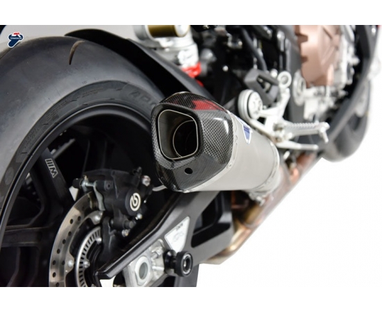 Termignoni has developed the homologated silencer , made of stainless steel with titanium sleeve and carbon endcup.