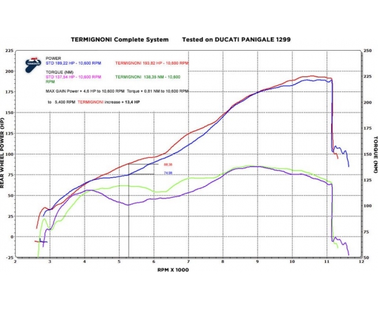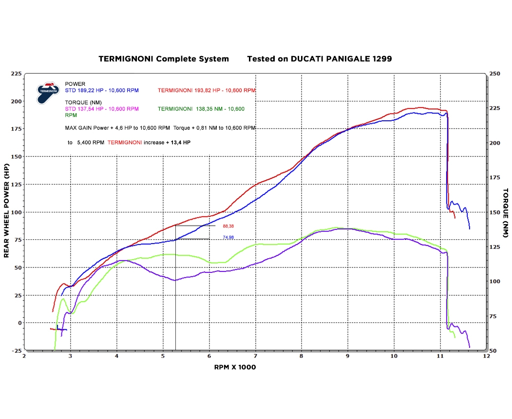 The titanium bush are machined with CNC and give to the exhaust more resistance. In the box are included two carbon heat shield.In terms of performance it offers:an increase of power ( + 4,6 Hp at 10.000 rpm) and torque (+ 0,81 Nm at 10.000 rpm).Increase +13,4 CV at 5,400 rpm