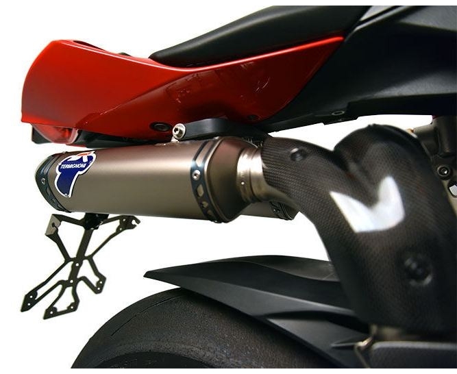 Remember that the original plate holder and passengers foot pegs , don’t fit with complete system Termignoni code D170.