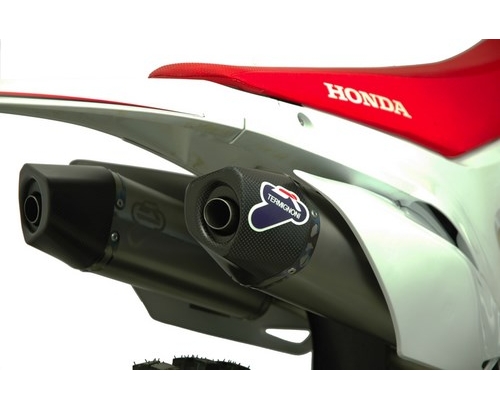 SILENZIATORI Termignoni introduces the racing double silencers, developed in partnership with Team HRC.The silencer characterized by “Relevance C” design is suitable to HONDA CRF 450 R ( 2015-2016), code H128.The exhaust is characterized by the main structure and sleeve in stainless steel with Carbon cap.The performance enhancement in our racing character, offer an even more powerful driving experience, coupled with our unmistakable #italiansound, make your bike unique.INOX