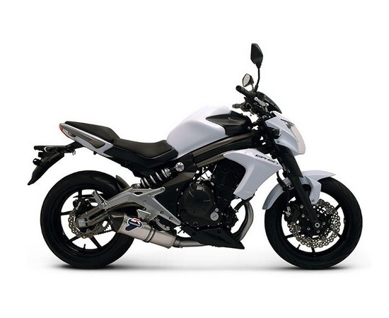 IMPIANTO DI SCARICO COMPLETO Termignoni introduces the homologated full exhaust system, code K072, “RELEVANCE” design for the KAWASAKI ER-6n (Model Year 2012-2016).The exhaust is characterized by the main structure in stainless steel, with sleeve and rear cap in carbon.It terms of weight the full system offers a reduce of weight (– 3,6 kg kilos), compared to original system.The performance enhancement and weight savings inherent in our racing character, offer an even more powerful driving experience, coupled with our unmistakable #italiansound, that make your bike unique.Struttura inox - Fondello carbonio - Camicia carbon
