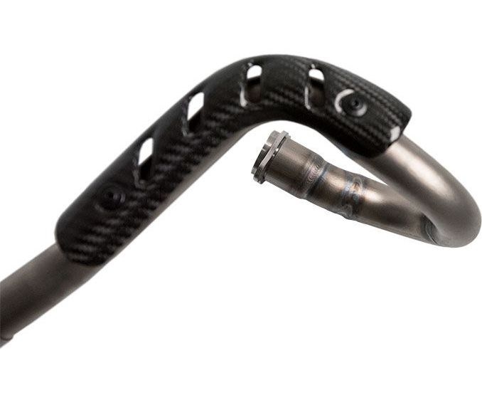 The manifold is characterized by the main structure in titanium with carbon heat guard included in the kit.