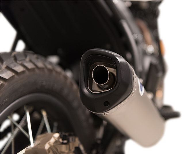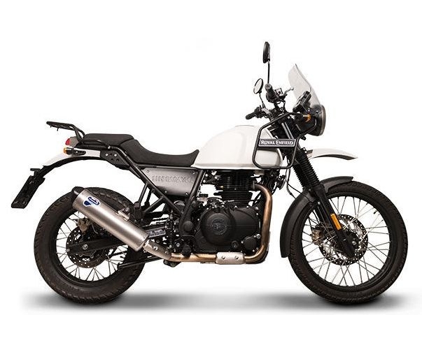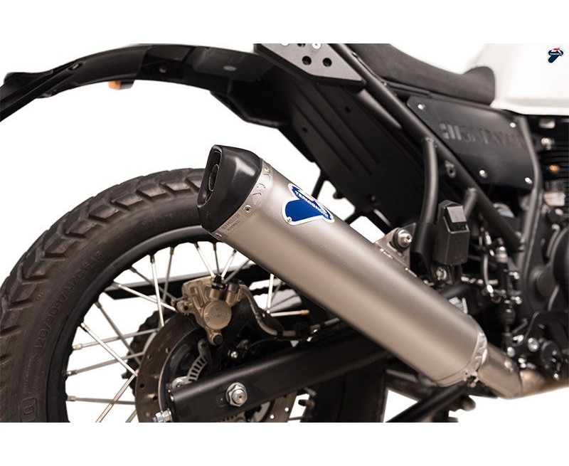 SILENCER Termignoni developed the racing silencer, dedicated to ROYAL ENFIELD HIMALAYAN 2018.Designed in Stainless Steel with rear cap in black, the silencer is equipped with the historical metallic logo on the conical sleeve.The saving weight, thanks to use of the best materials, is of 2 kg.In terms of performance it offers an increase of power ( + 0,8 Hp at 3.500 rpm) and torque (+ 1,65 Nm at 3.500 rpm).Stainless Steel