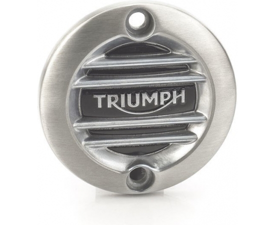 Triumph Brushed Acg Badge - Ribbed, A cast aluminium ACG Badge that subtly enhances your motorcycles style. It can be attached to your Triumph in place of the original part. Features Triumph branding on a glossy black backing and a brushed finish with ribbed detailing. Other finishes and styles are available.