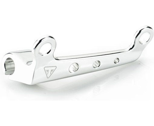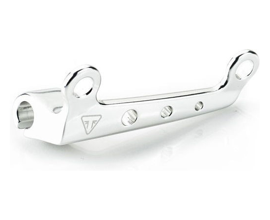 Triumph Clutch Cable Guide - Clear Anodised, A CNC machined aluminium Clutch Cable Guide bracket designed to replace the original part. Featuring laser-etched Triumph logo branding detail and drilled body. Available in a Black, Clear Anodised and Gunmetal Finishes.
