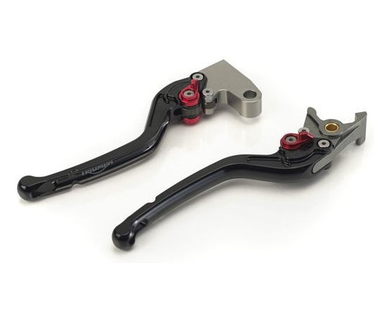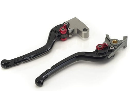 Triumph Machined Levers - Standard, CNC machined, billet aluminium brake and clutch levers to replace the standard equipment items. Features aerospace grade aluminium with hard anodised finish, Contrasting machined and anodised span adjusters and laser etched Triumph branding. Available to suit both Radial and conventional type master cylinders.