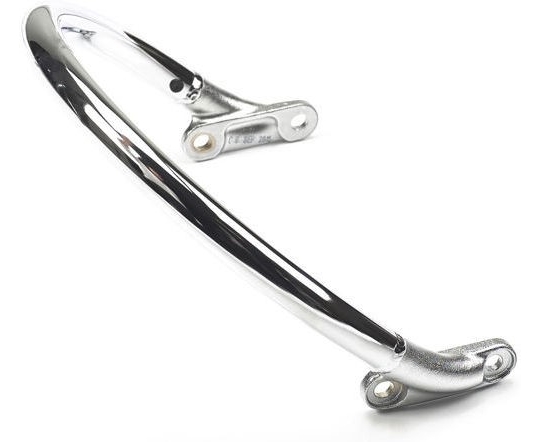 Triumph Grab Rail, A Grab Rail designed to help your passenger feel more comfortable and confident on your Triumph. Finished in high quality chrome, but also available in powder coat black. Requires the Mounting Rail Kit (model specific) to be fitted.
