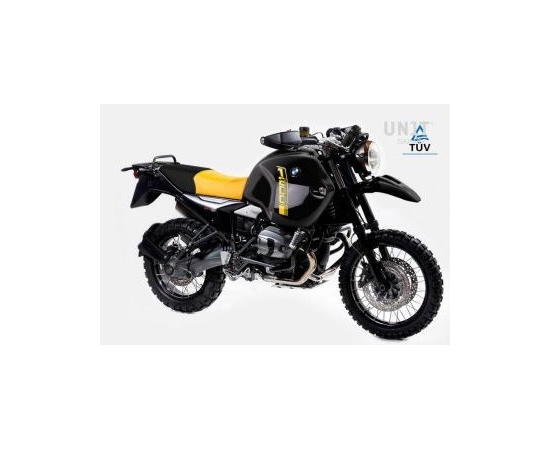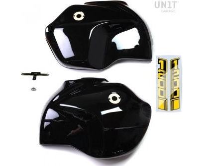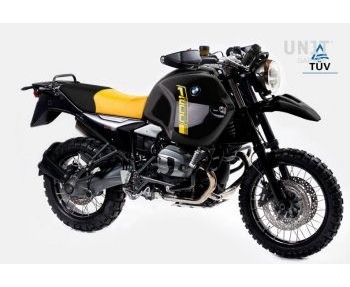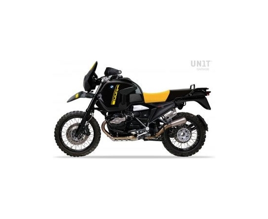 Pair tank covers in special resin and MAT with carbon fiber reinforcements, colour Black with stickers. Give to the bike a great vintage look reminiscent of the mythical PD version. Lightweight, fits very fast, comes painted with original colors, complete of holes, screws, grommets and mounting bracket. The right side can be quickly removed to make service of air filter. The rear bracket mounting is provided with a slot for engagement tank bag. On the sides of the tank there is place to fit the original logo of the R1200 GS (code 511147721222) that you can remove from your bike or buy from official BMW dealer.