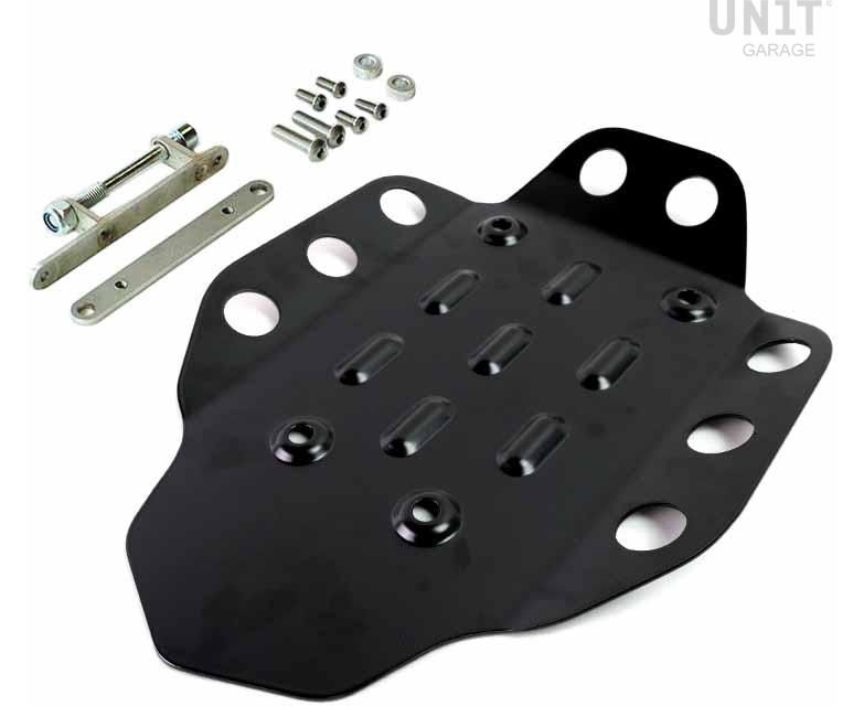 Engine protection plate in anodized aluminum, protects the engine and the exhaust manifolds in off-road use.