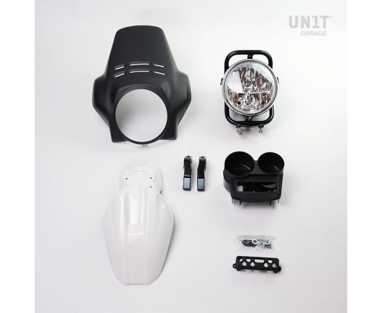 It is easy to instal on all our Risers and includes the subframe for the headlight, high front fender, the original arrows and the optional windscreens. It is designed to install the original tachograph.