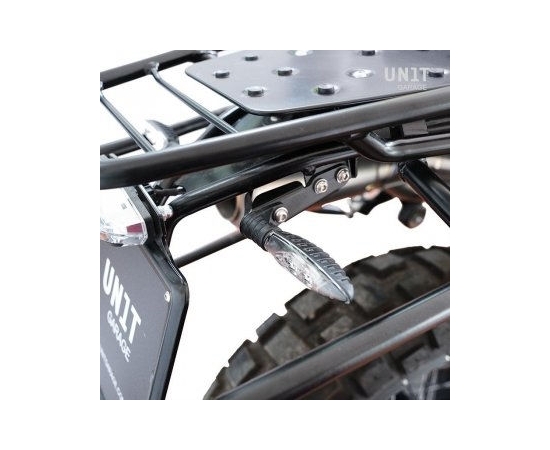 Pair of metal brackets designed to move the turn signals of the vs nineT backwards. It often happens that to mount other accessories such as bags or aftermarket exhausts the arrows are a problem. With these practical accessories in a few minutes you will solve without modifying the electric cables that are already long enough. They are mounted both on the original mudguard and on our high license plate holder and the arrows of 60 mm are set back.